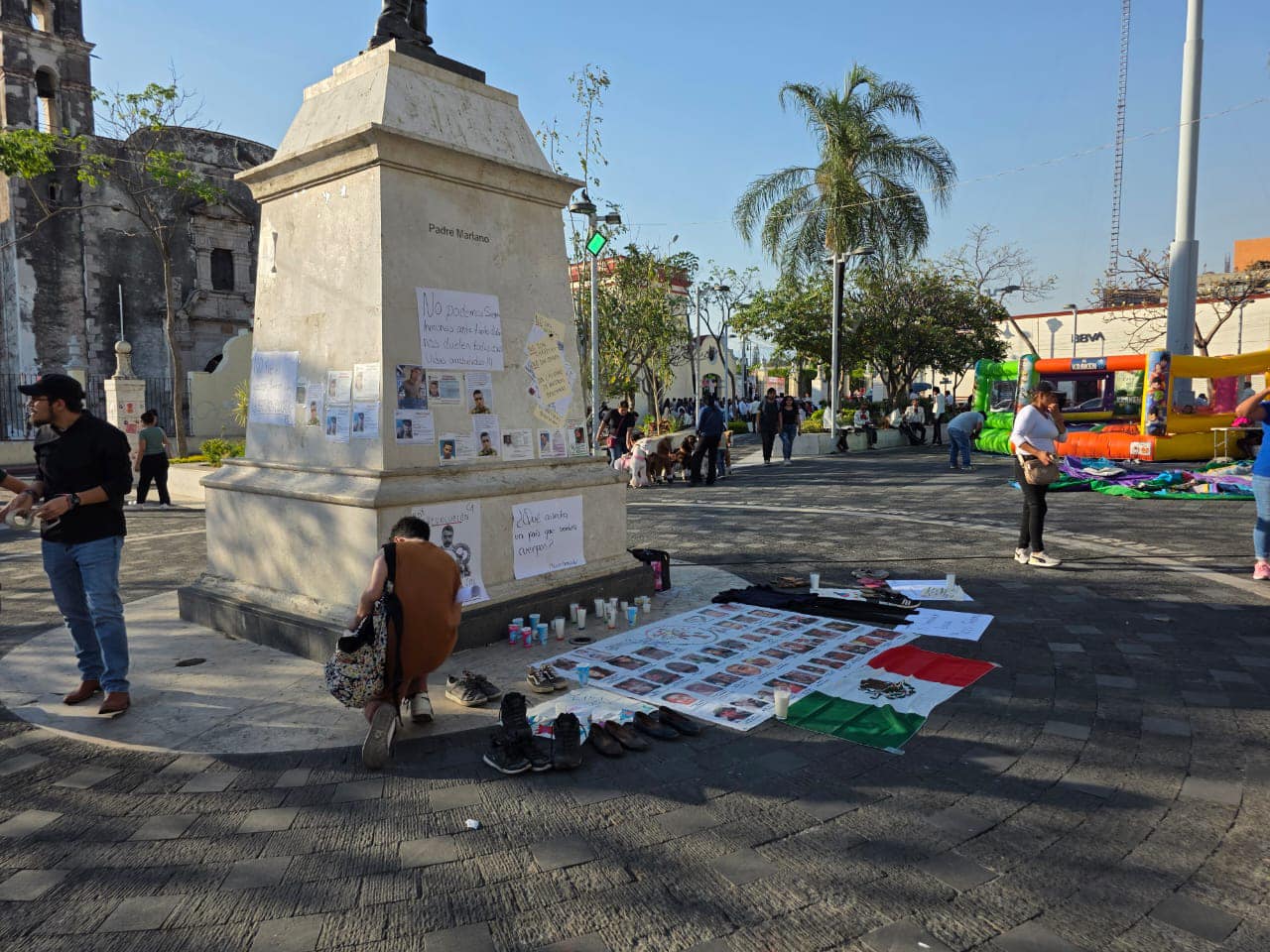 Los manifestantes pidieron a las autoridades que no retiren las imágenes y mensajes colocados en la plaza, con la esperanza de que alguien reconozca a alguna de las personas desaparecidas y ayude en su localización.