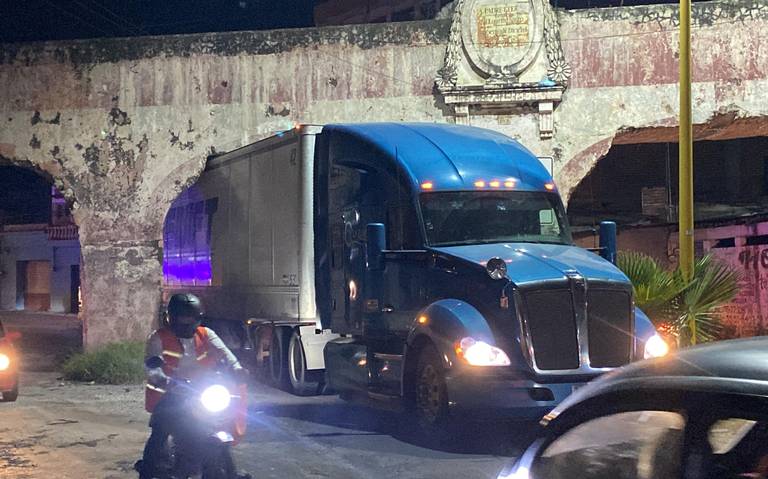 Tractocamión se queda atorado en el acueducto de Cocoyoc por tercera vez en un año